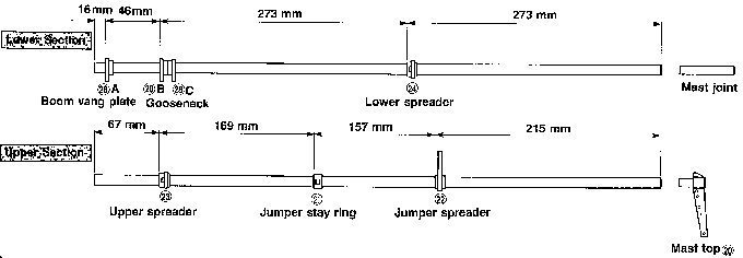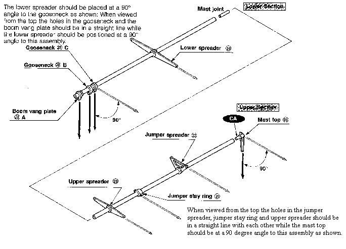 Avoid letting glue enter the small holes in the spreaders, gooseneck and vang plate fittings.